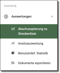 Mit Hilfe dieser Funktion erstellen Sie detaillierte und umfangreiche Auswertungen aus Ihrer Streckenliste über alle dort vorhandenen Daten. Ausserdem können Sie die Ergebnisse aus der Streckenliste mit den Einträgen in Ihrer Abschussplanung vergleichen.