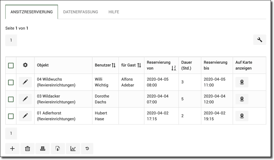 - Hier können Sie die letzten Ansitzreservierungen für diese Reviereinrichtung anschauen.