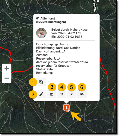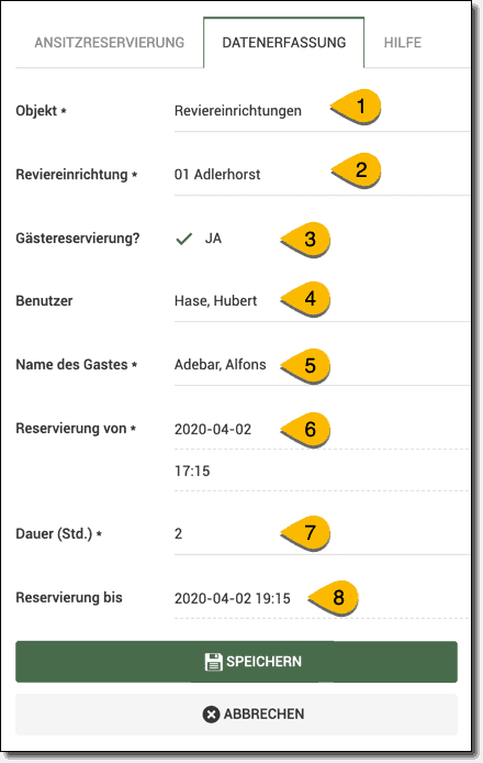 - Hier können Sie die Ansitzreservierung bearbeiten.