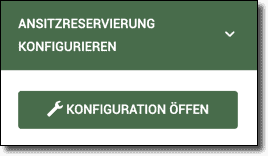Abhängig von Ihren Benutzerrechten können Sie die Vorgaben für eine Ansitzreservierung auf der rechten Seite im Fenster ANSITZRESERVIERUNG KONFIGURIEREN bearbeiten. Klicken Sie dazu auf den Button KONFIGURATION ÖFFNEN.