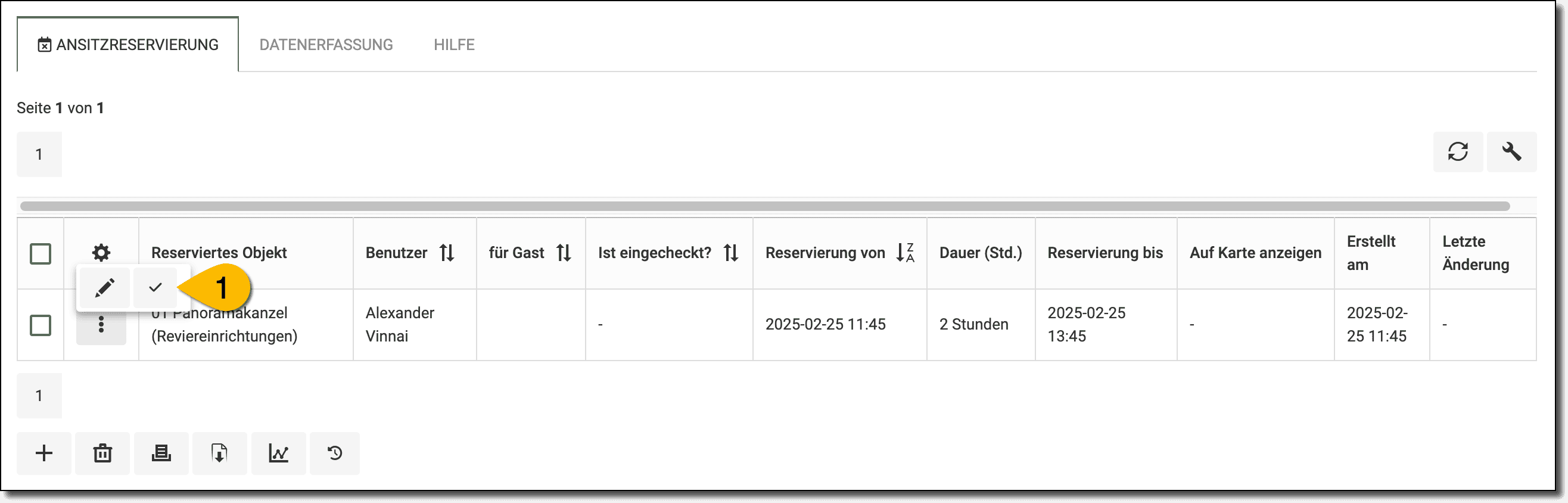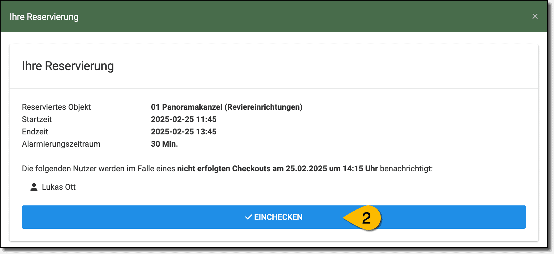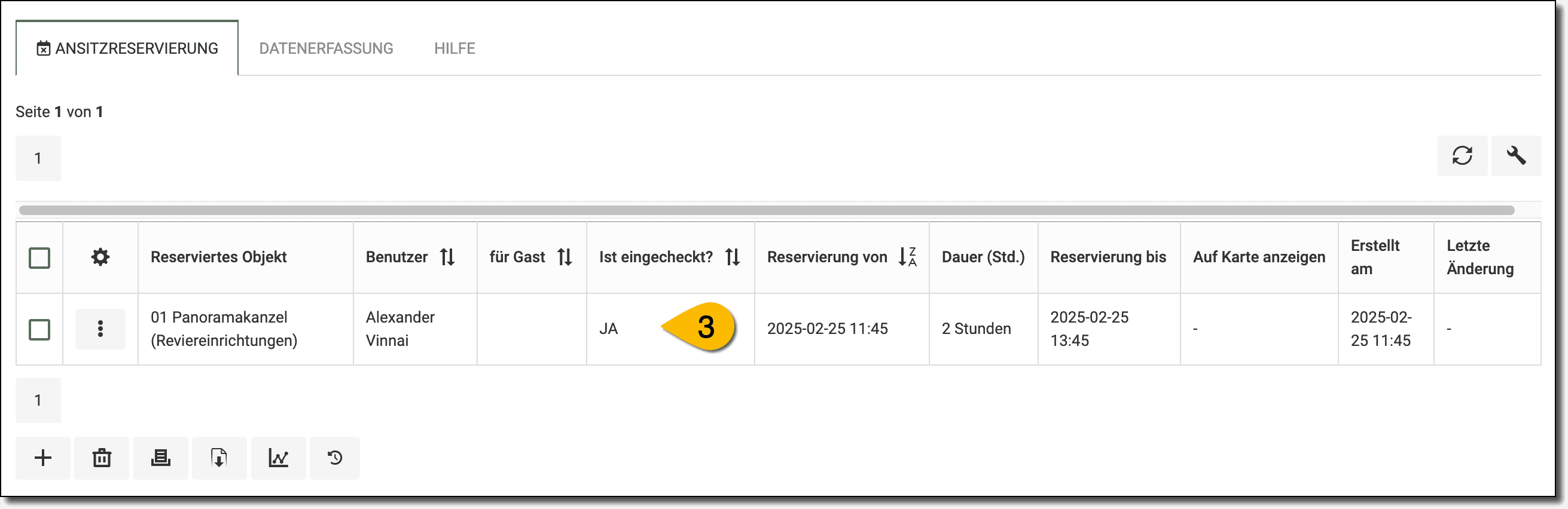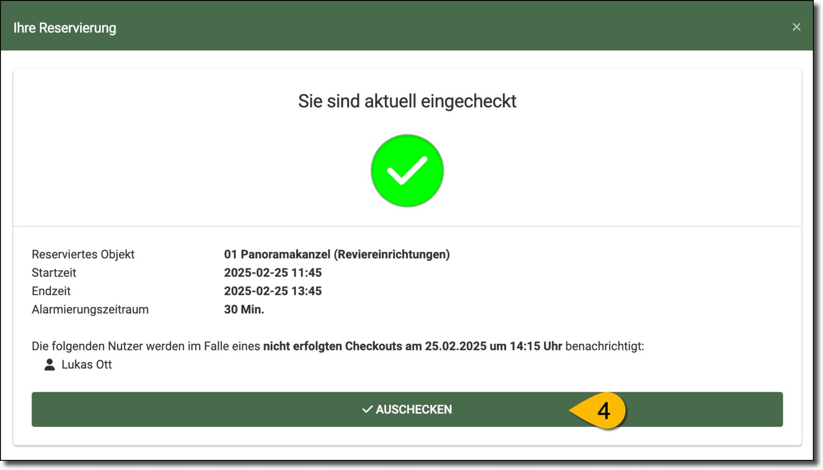 - In der Ansitzreservierung erscheint JA unter eingecheckt.