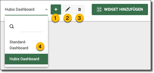 - Hier können Sie weitere Dashboards anlegen, zwischen denen Sie dann nach Belieben wechseln können.