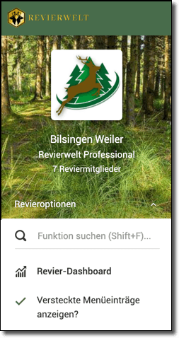 HINWEIS: Die Option Revierfunktionen wählen ist dem Revieradministrator vorbehalten.