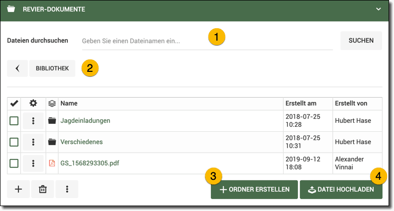 Wildportal bietet Ihnen die Möglichkeit, Dokumente sowohl als persönliche Dokumente unter Ihrem Benutzeraccount wie auch in einem Revier als Revier-Dokumente zu sammeln und zu verwalten. Sie können die Dateien in Ordern organisieren oder auch unsortiert hochladen.
